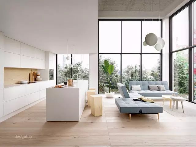 北欧风,开放式厨房...
